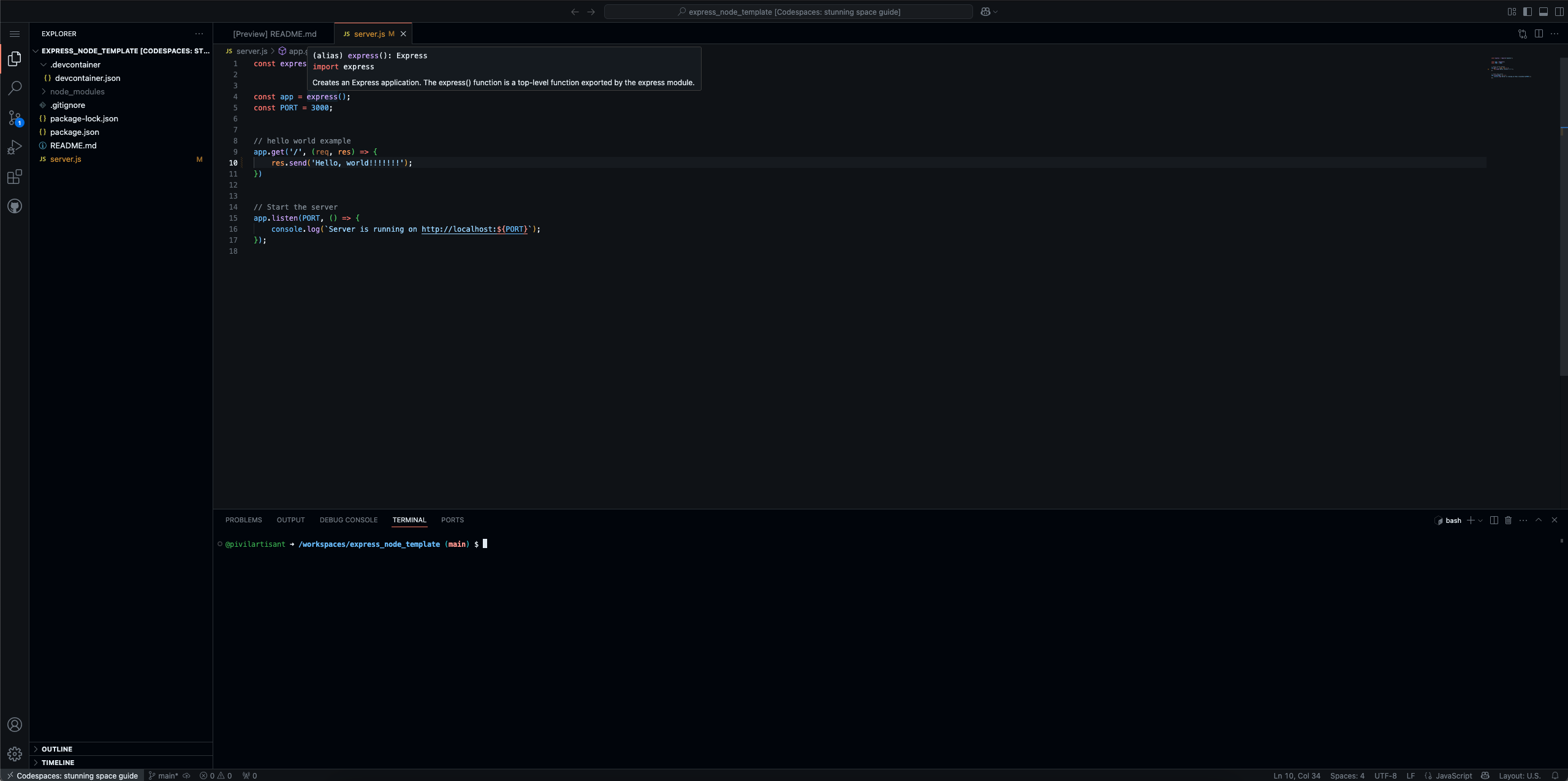 Once you've done that, you should have a 'codespace' that looks like this: